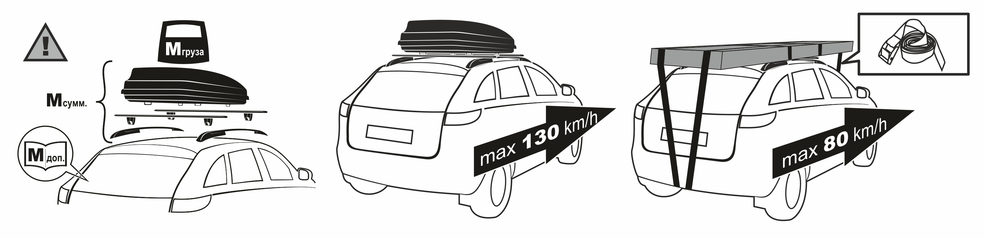 Масса перевозимого груза-Определяется расчётным способом: Максимальная масса перевозимого груза равна разности допустимой нагрузки на крышу, указанной в руководстве по эксплуатации автомобиля, и суммарной массы всех вспомогательных устройств, установленных на крыше автомобиля (рейлингов, багажников, боксов, креплений для велосипедов, лыж, сноубордов и прочего).